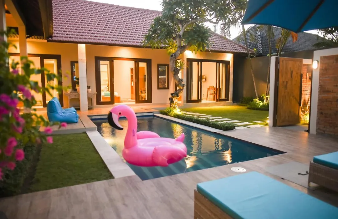This accommodation overlooks the garden from a terrace. The Canggu villa offers cars for rent and features a swimming pool.